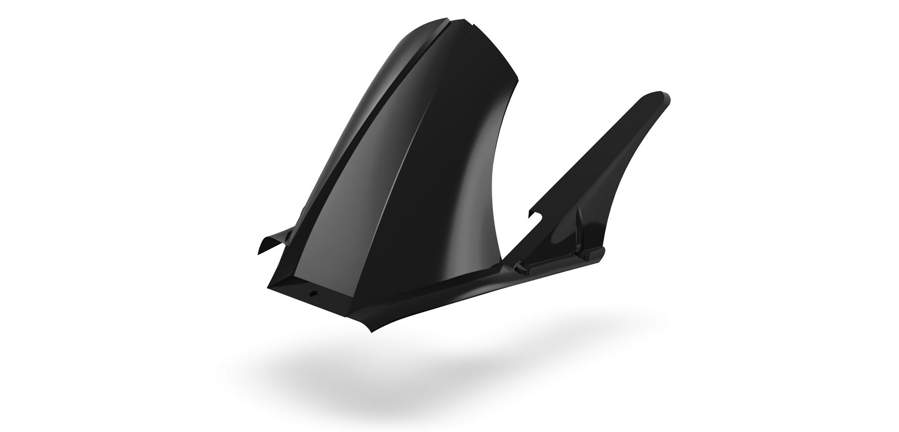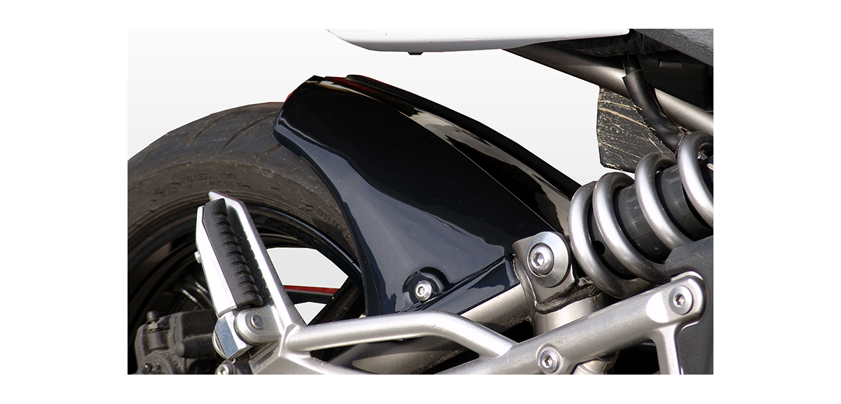 It is made of ABS plastic in glossy black, with an acrylic coating and UV protection. The rear mudguard can be easily mounted, the ABS plastic is also very easy to paint without further treatment.