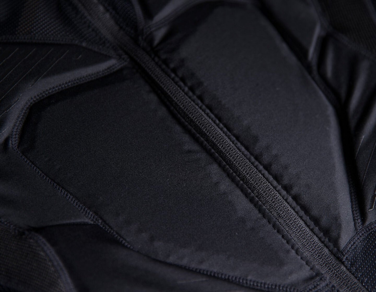 Chasis elástico que absorbe la humedad HYDRADRY™: el chasis elástico que absorbe la humedad Hydradry se combina con protectores de impacto D3O® y paneles resistentes a la abrasión hechos con fibras DuPont™ Kevlar®.
