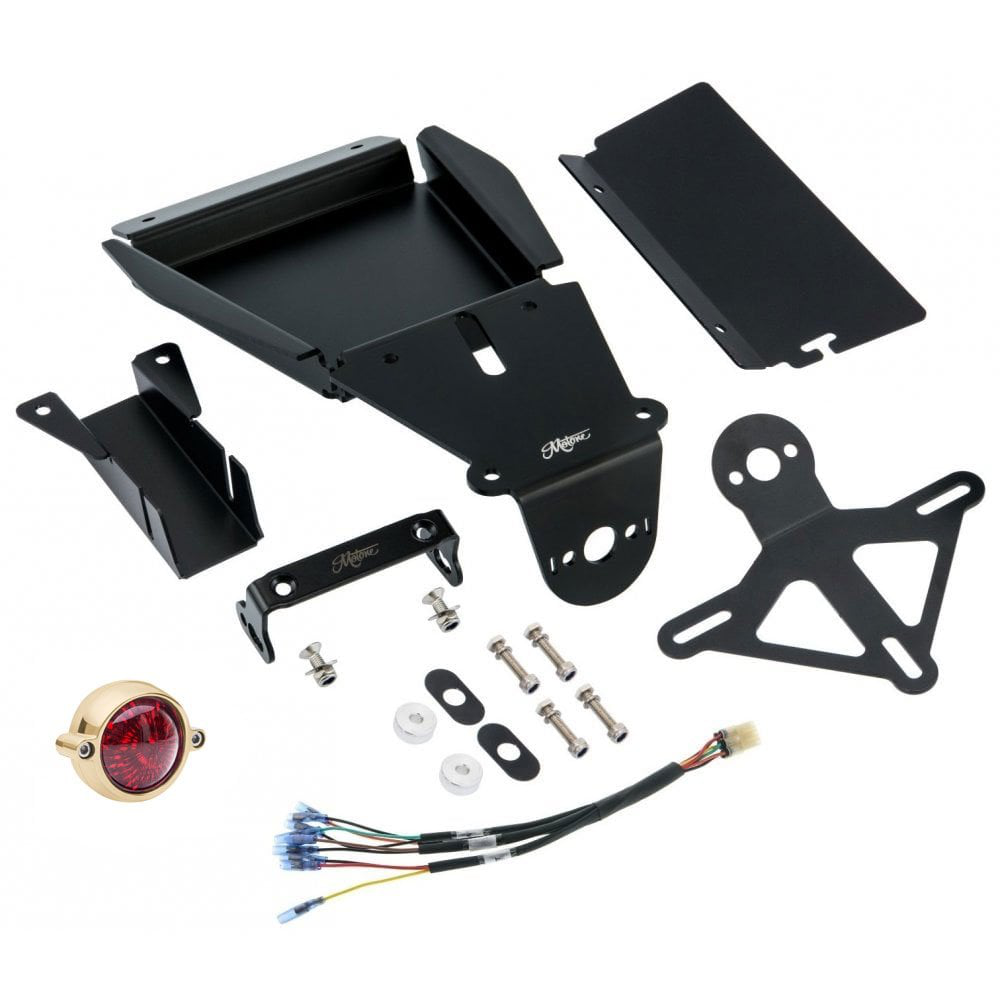 Motone Tail Tidy Kit 2.0 viene con bandeja de almacenamiento y Motone ELDORADO Solid Brass Tail Light integrado. Nuestra generación actual de Motone Tail Tidy Kit tiene un soporte modular extraíble para los intermitentes, lo que facilita aún más las cosas para aquellos que quieren poner las señales en otro lugar. Tiene un kit de cableado Plug and Play que se puede instalar en casa.