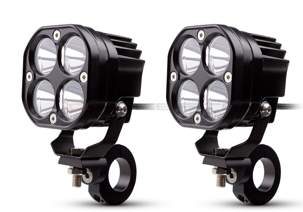 - PACKAGE INCLUDES: 2 X 40W LED SPOT LIGHTS + 2 X BAR CLAMPS WITH SPACERS + COMPLETE WIRING KIT + 6 X ZIP TIES + WIRING DIAGRAM