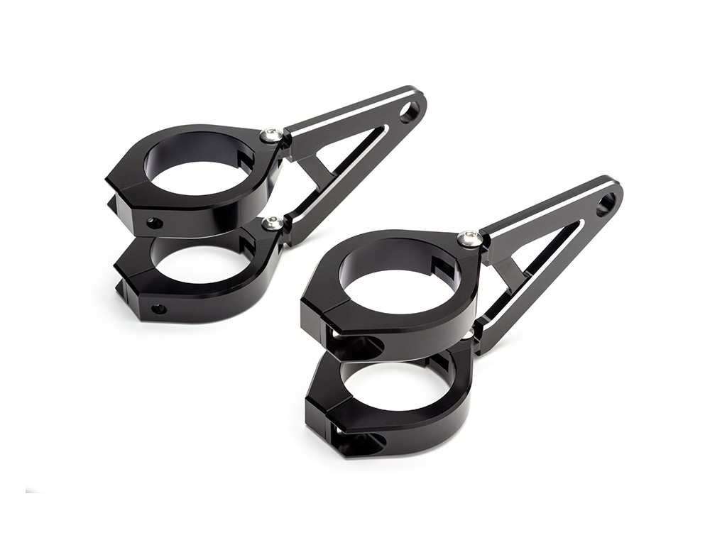 These high-quality contrast-cut headlight brackets are made from machined T6061 aluminium and have adjustable arms, which allow for different width headlights.