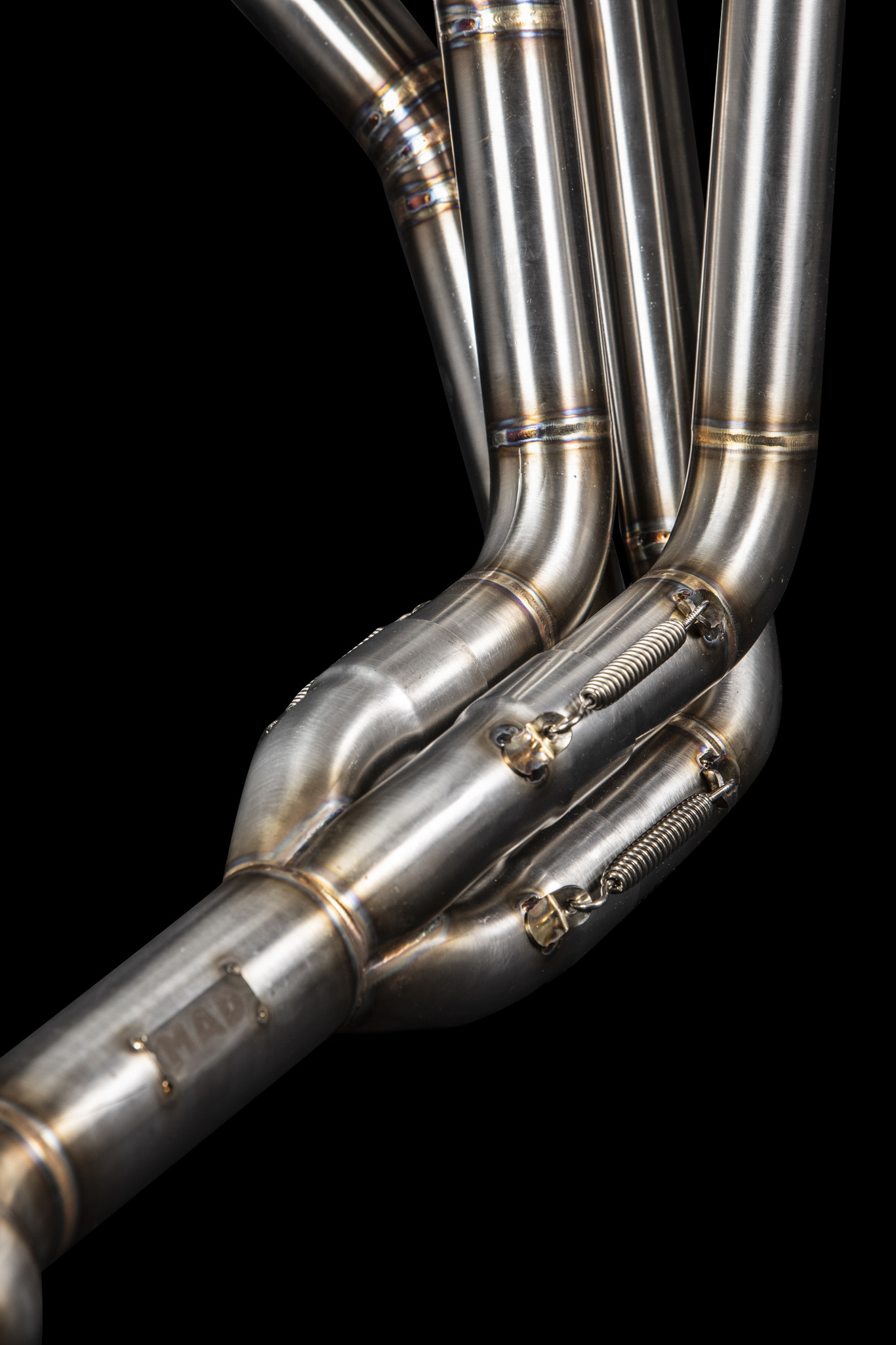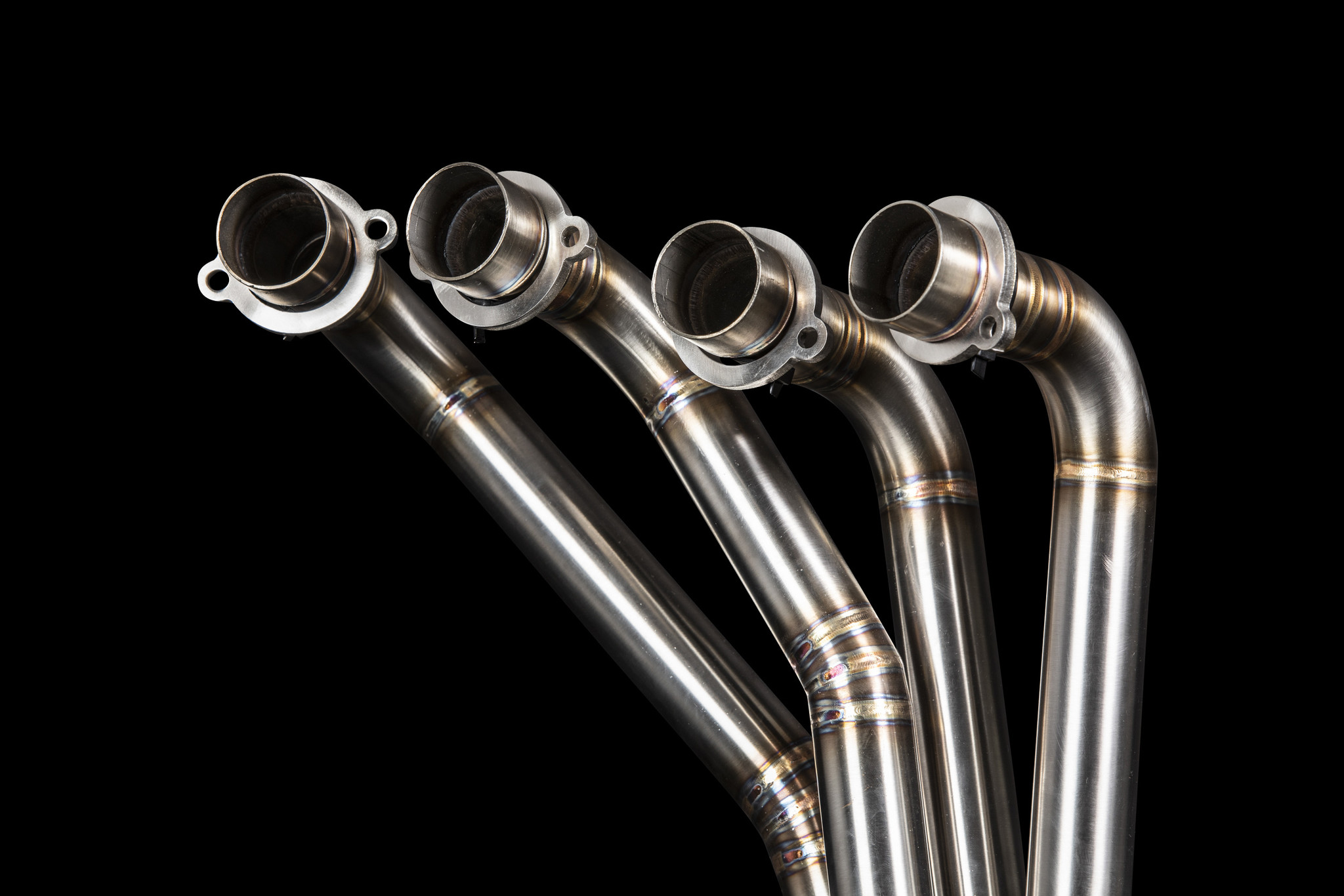 Los escapes están hechos de acero inoxidable. Los tubos tienen un diámetro de 38 mm y el silenciador encaja en una brida de 50,8 mm. El escape se puede entregar con o sin silenciador, eso depende de ti.