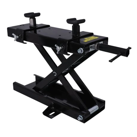 Construcción de acero pintado en negro. El Deadlift es un elevador de motos tipo minitijera, fiable y robusto, capaz de levantar fácilmente incluso los modelos HD Touring más grandes. Perfecto para trabajos de mantenimiento en la rueda delantera o trasera.
