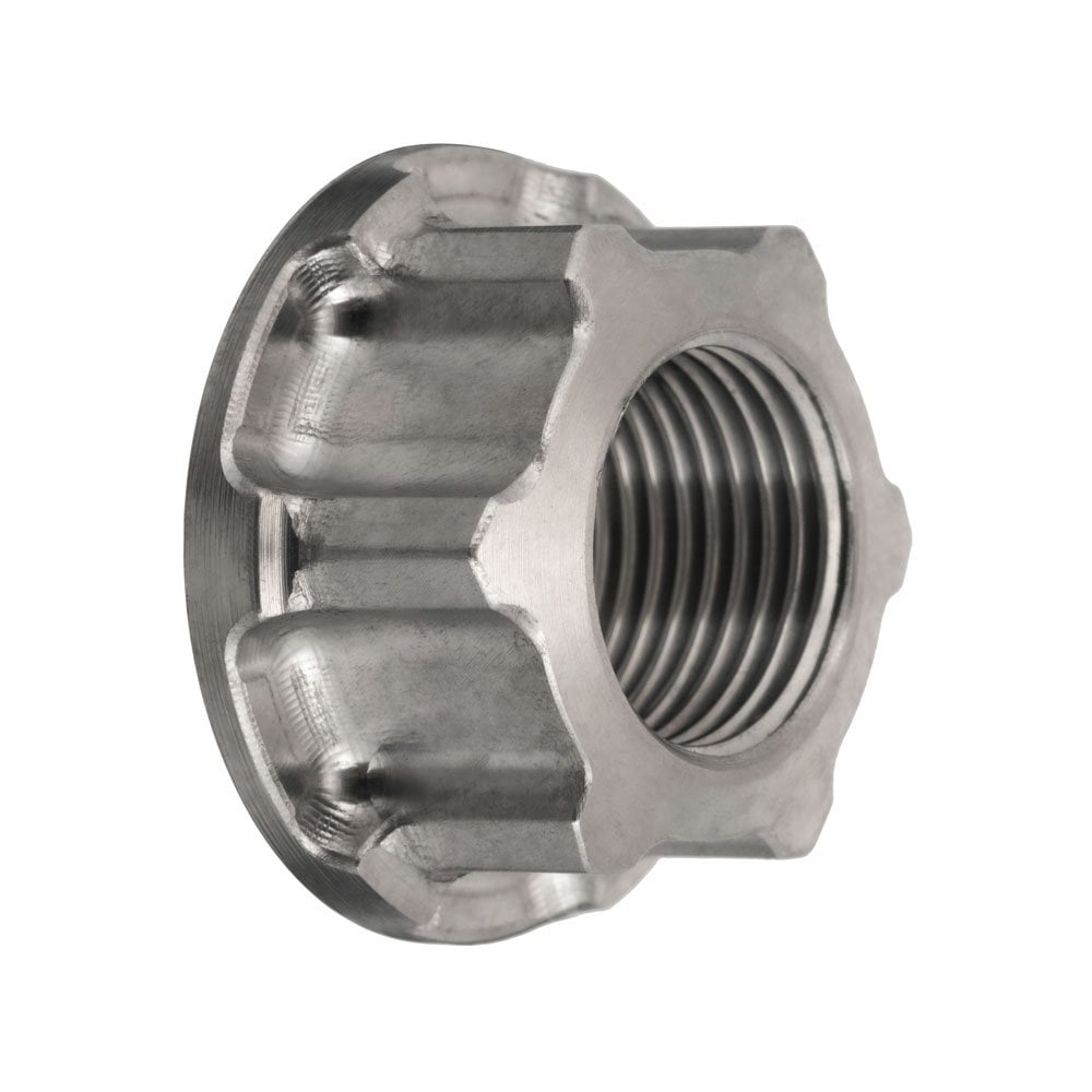 La tuerca Motone The Gaffer | Rear Axle Nut es adecuada para todas las Triumph Twin de 2016 en adelante. Está fabricada en aleación de titanio GR5.