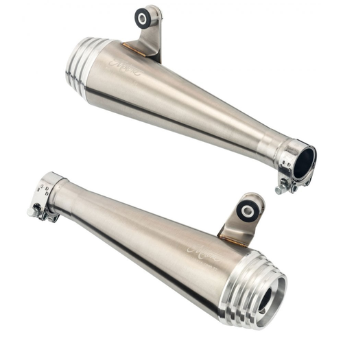 Saturn V - Sistema de escape para Triumph Thruxton 1200 y Speed Twin. Dispone de dos silenciadores Slip-on fabricados en acero inoxidable con tapas finales billet mecanizadas CNC.