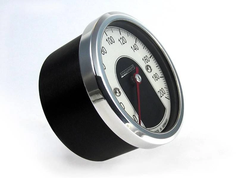 El sensor de velocímetro de acero inoxidable incluido es muy pequeño (M5/23 mm) y, por lo tanto, fácil de ocultar. Se instala fácilmente en la rueda delantera o trasera con el cable conector (1,5 m de longitud). Esto permite adaptar fácilmente un velocímetro mecánico original a una motocicleta.