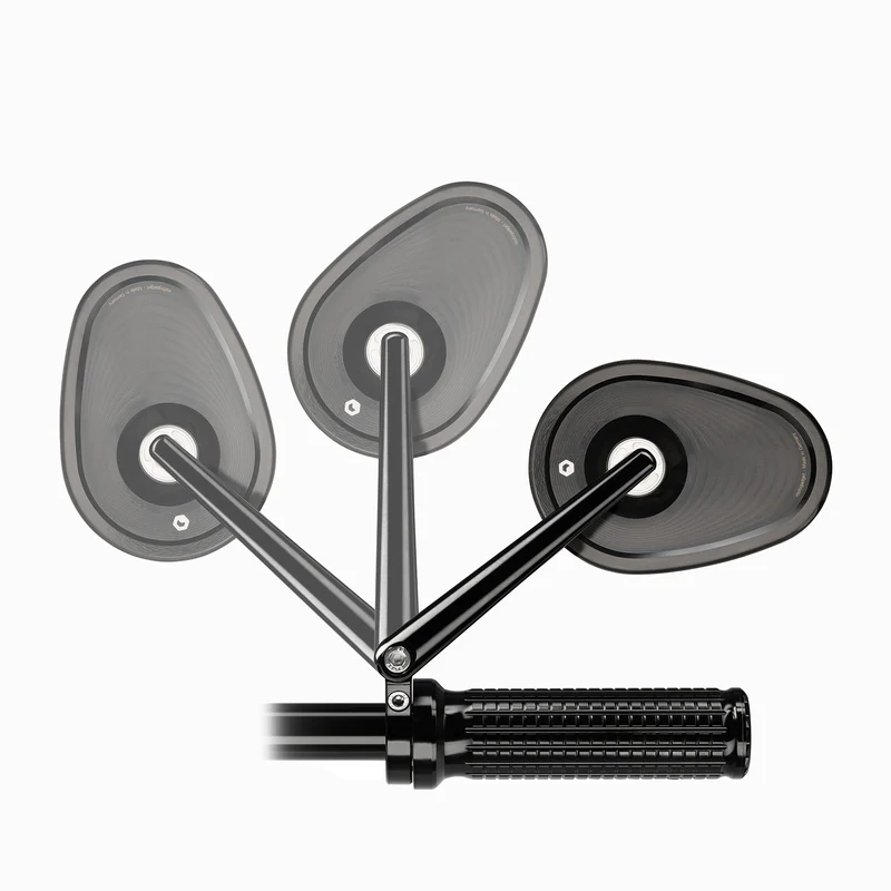 La solución compacta con brazo de 110 mm de longitud, ideal para scrambler o supermoto. Instalación rápida con una amplia gama de opciones de montaje sin modificar el manillar. La abrazadera plegable de alta calidad, fresada en CNC, es extra estrecha para minimizar el espacio. El mecanismo de plegado integrado es ideal para espacios reducidos, al transportar vehículos o cuando hay problemas de espacio en el garaje. El espejo cuenta con marcado ECE y se puede montar por encima o por debajo del manillar.