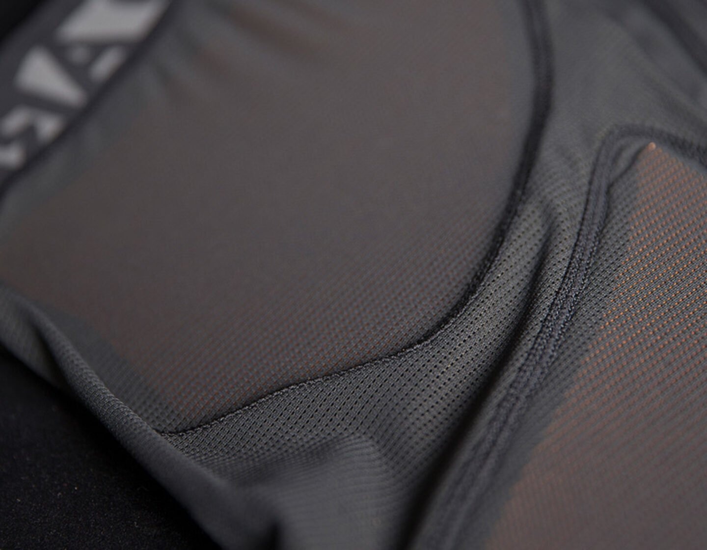 El chasis elástico que absorbe la humedad Hydradry se combina con protectores de impacto D3O® y paneles resistentes a la abrasión hechos con fibras DuPont™ Kevlar®.