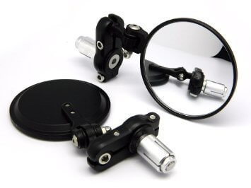Par de espejos Cafe Racer negros de 3" en el extremo del manillar. Sí, se pueden colocar en un manillar de 22 mm (7/8") y también son plegables.