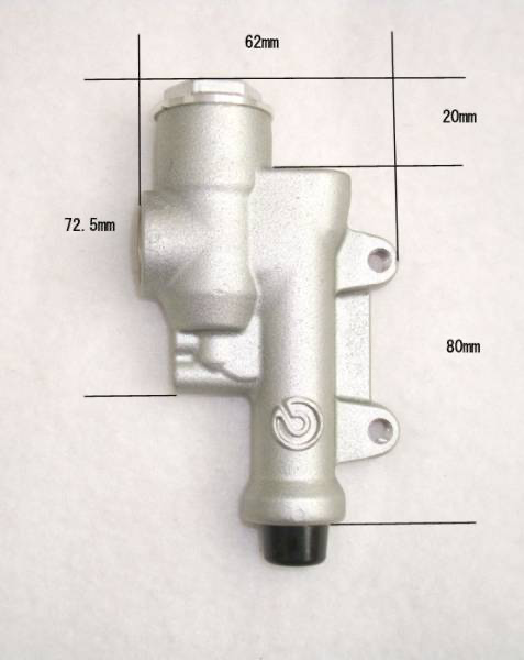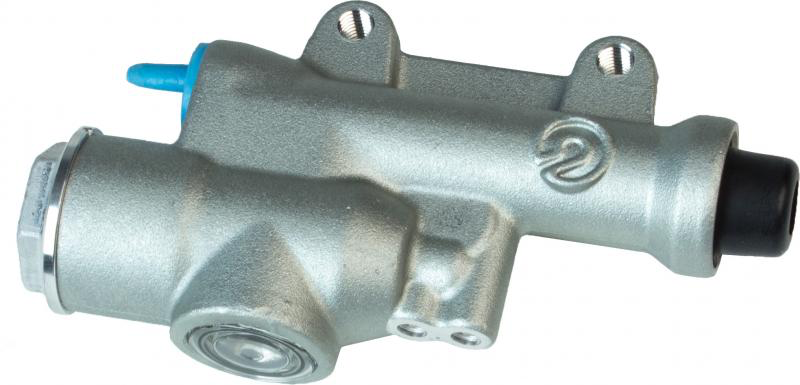 Brembo PS13 Rear Brake Master Cylinder with integrated reservoir (10.8505.11). Master cylinder body material is made of Aluminum alloy, as is the cap. Operating fluid should be DOT4.