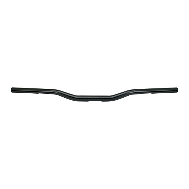 Negro mate electrochapado/cromado ; Cromoly 4130 con 3mm de espesor de pared; Con hoyuelos; Viene con un centro más grande de 1-1/8" (1.125" o 28.6mm) de diámetro para su uso con elevadores de motocross; La barra se estrecha a 1" en los mandos; Dimensiones aprox: 30.5" ancho x 2.25" alto x 2.5" pullback x 5" ancho central