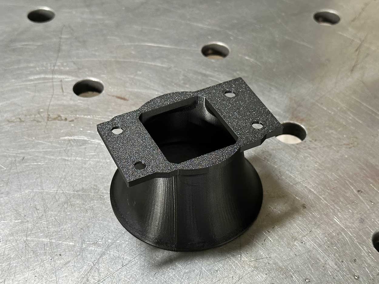 La entrada de aire está diseñada para formar una transición perfecta de una brida cuadrada a una redonda y mantener una