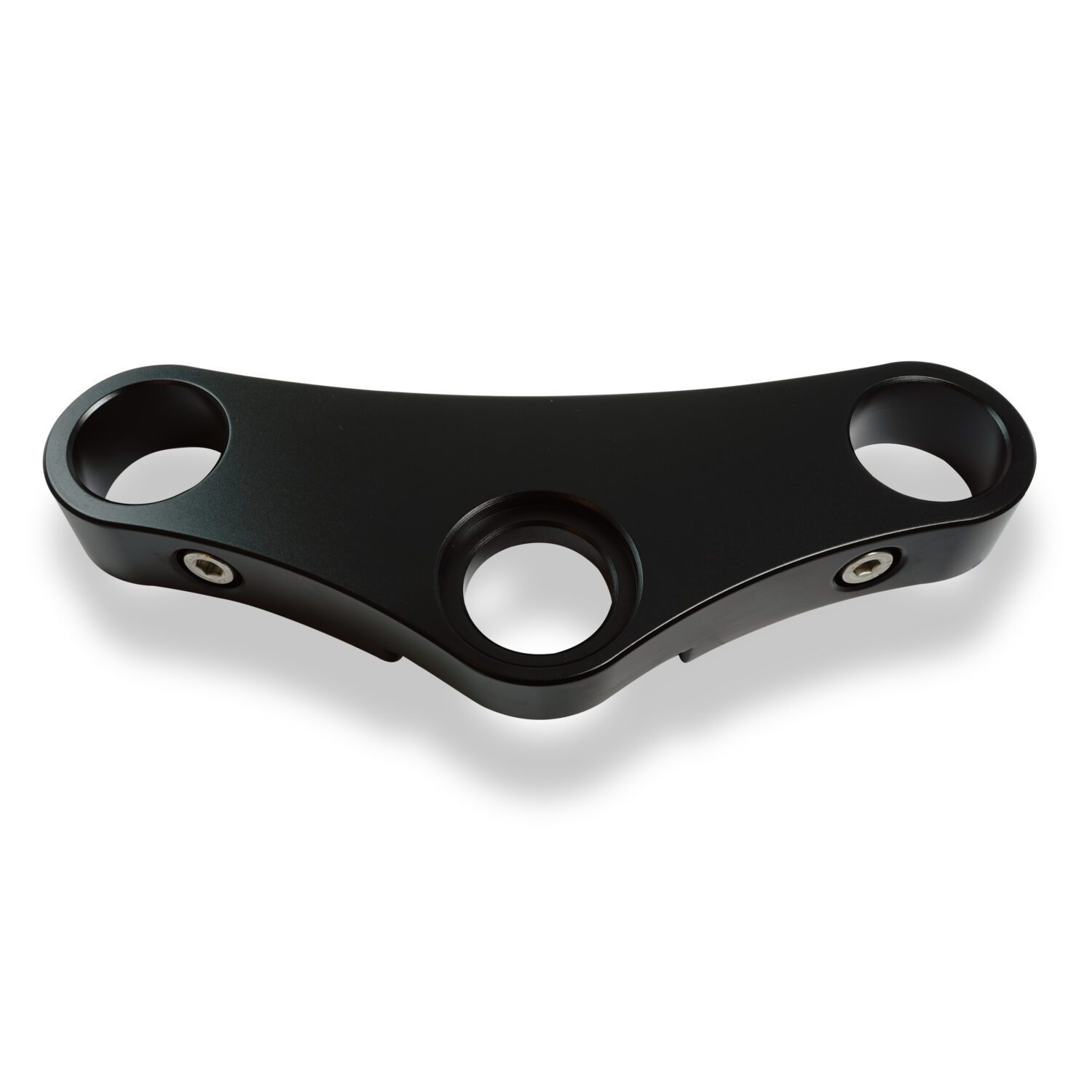 This high-quality triple tree clamp is CNC machined out of a single piece of high-grade aluminium. After machining the triple tree clamp undergoes a series of surface treatment steps including anodising. The result is a smooth satin finish that is both scratch and weather resistant. Perfect for a café racer motorcycle build or any other custom build, where you wish to use clip-ons.