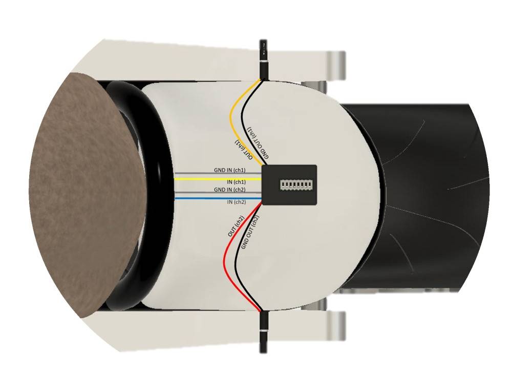 Up to 2 channels can be operated, such as turn signals at the rear left and turn signals at the rear right.