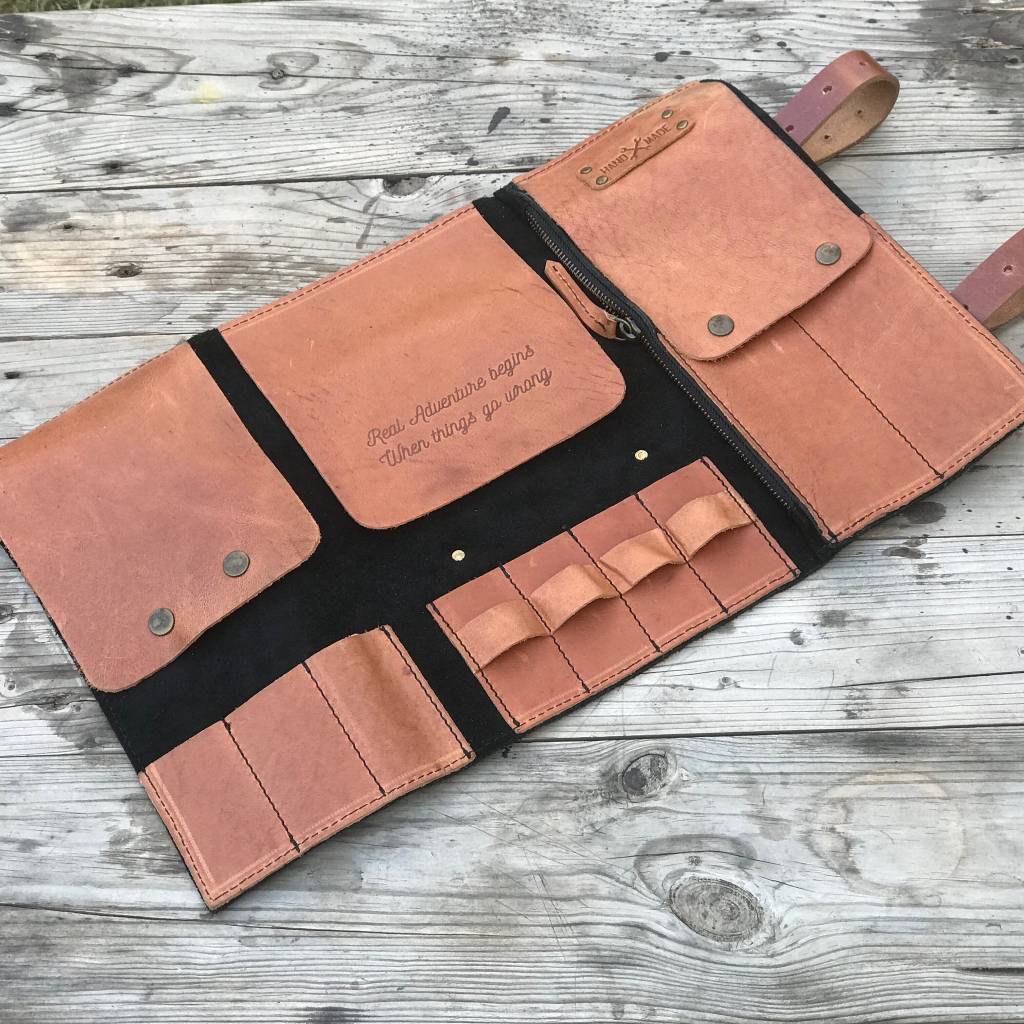 The Road is full of surprises and its better to be prepared for the ones that you don't enjoy. The Trip Machine Tool Roll could carry everything that you'll need to fix your motorcycle (except the mechanic).