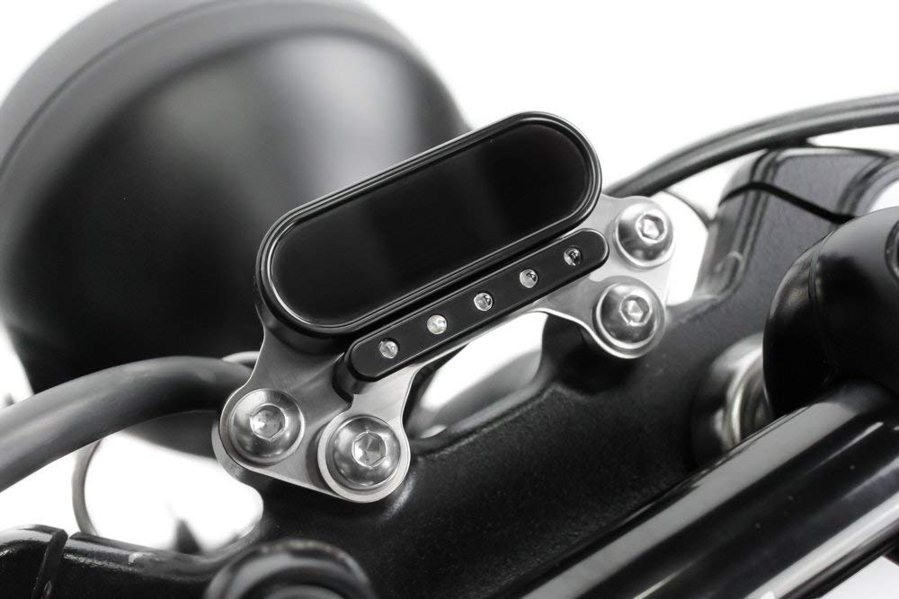 The indicator light holder combines streamlined the indicator lamp Unit motosign with the speedometer motoscope mini from a high-tech Manufacturer Moto gadget.