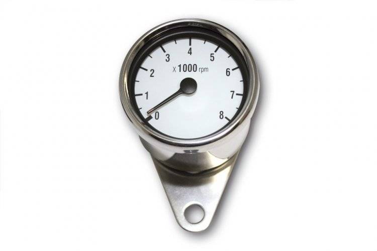 Tacómetro Cafe Racer cromado de 8.000 RPM. Este tacómetro tiene un diámetro de 60 mm y luz de fondo blanca. ¡Genial, verdad!