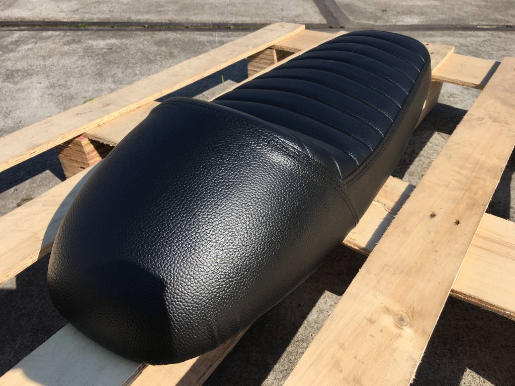 The seats are made of PU (Skai) leather because this material has a higher resistance to rain and sunlight. As you might have noticed, it also makes the seat more affordable. The quality is superb and it does complete every Cafe Racer!