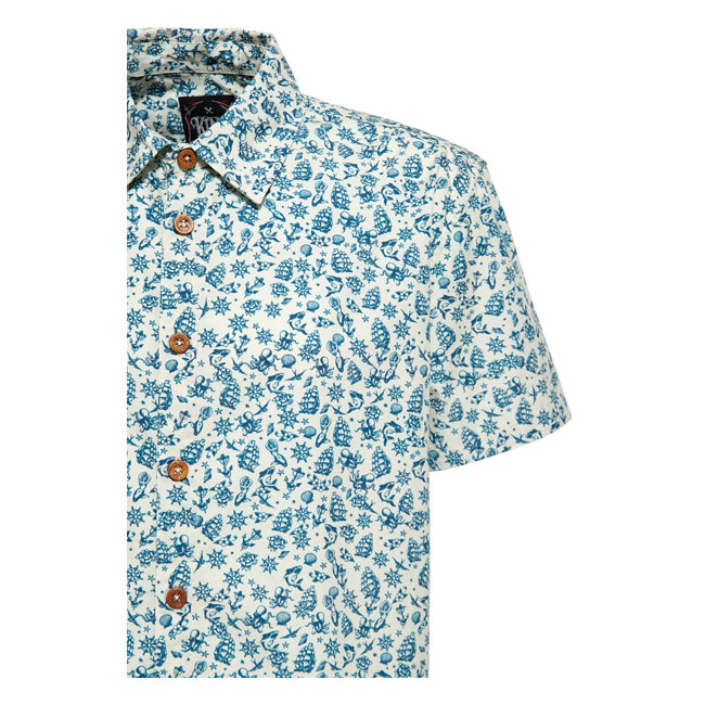 Sumérgete en un mar de nostalgia con la camiseta King Kerosin Vintage Sea Pattern en color blanco hueso. Esta camiseta luce un diseño marítimo clásico sobre un elegante lienzo blanco hueso. Perfecta para quienes aprecian la moda atemporal inspirada en el océano.