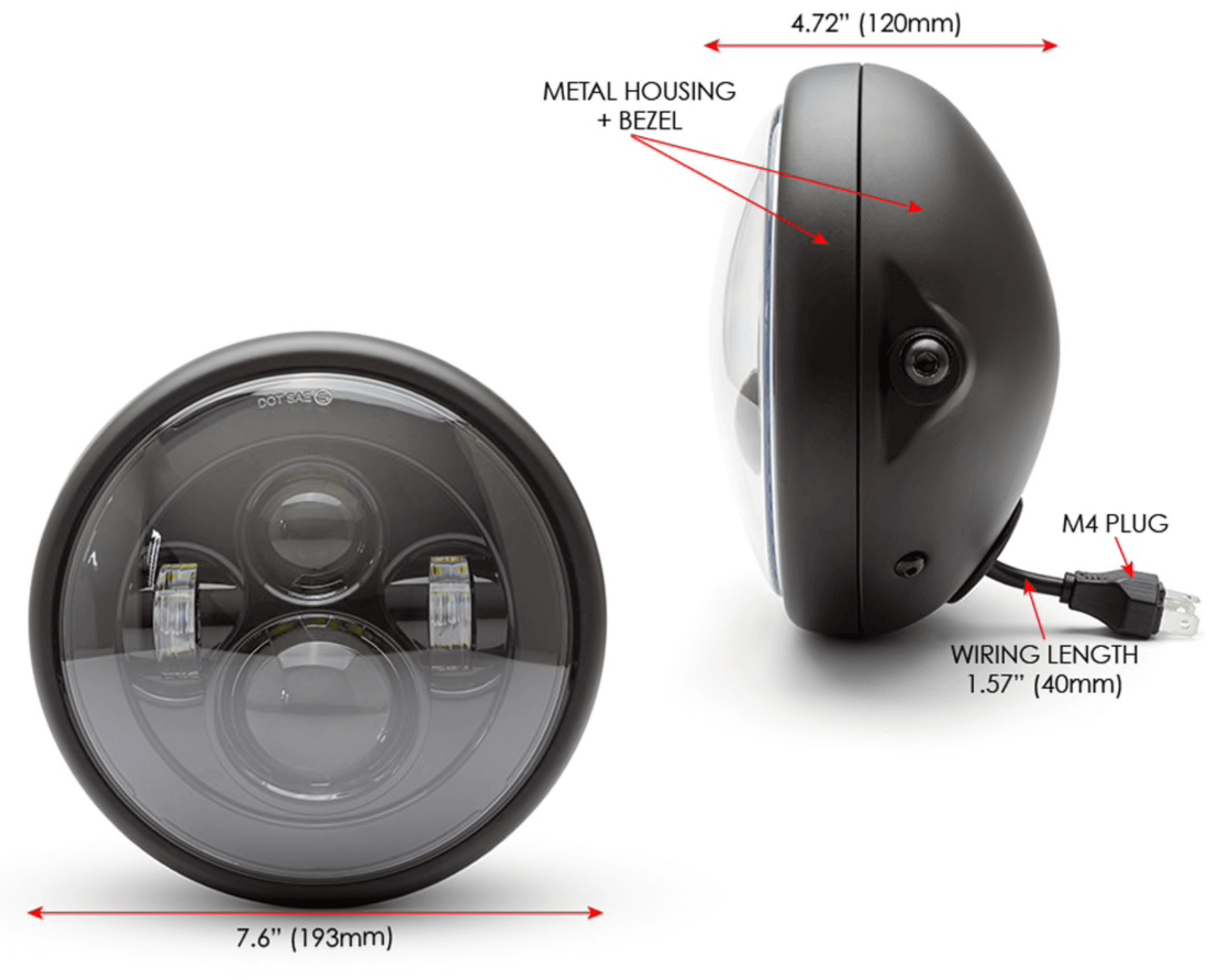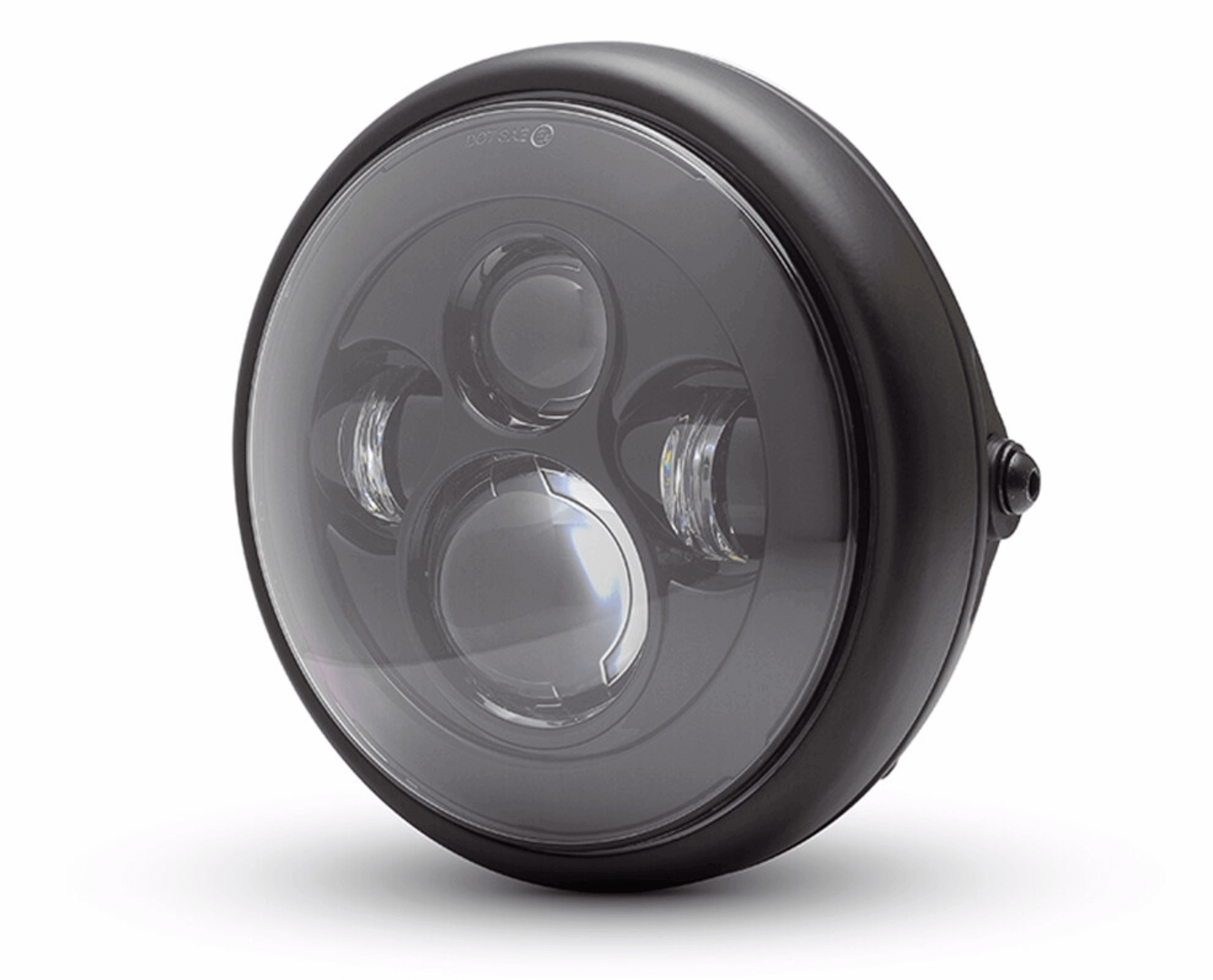 This high-quality solid headlight is ideal if you want to upgrade, or simply change your motorcycle's headlight. It's a classic design that doesn't go out of fashion and being black, will eventually offer that patina look. Being 66W, it's bright, too and is shallow enough to sit close to your front forks if you're after a compact front-end look.