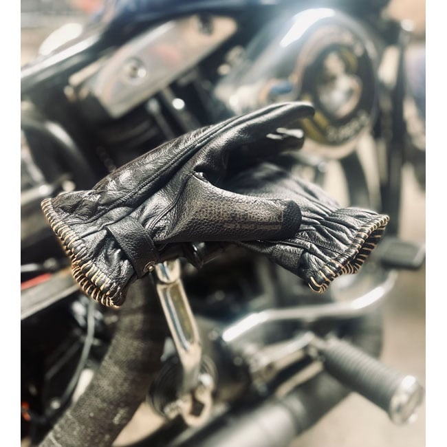 Les gants Loud Ride noirs sont confectionnés en cuir de vachette pleine fleur de première qualité, alliant style et protection pour les motards aventureux. Homologués CE, ces gants mêlent un charme robuste à un look vintage qui se patine avec le temps, ce qui en fait le compagnon idéal de vos voyages.