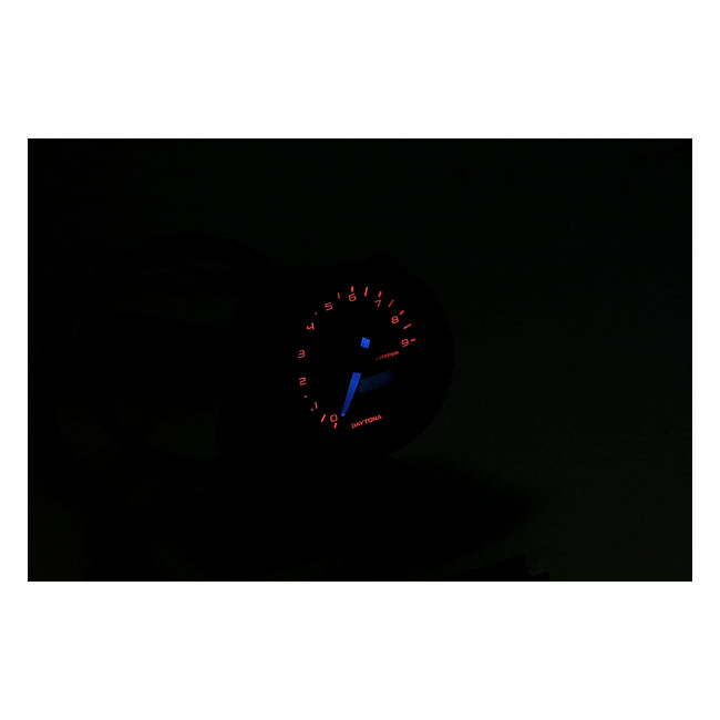 Le diamètre est de 48 mm ! Le compteur encastré fait environ 40 mm de diamètre et dispose d'un rétroéclairage. Il peut atteindre 9.000 tr/min. Éclairage blanc.