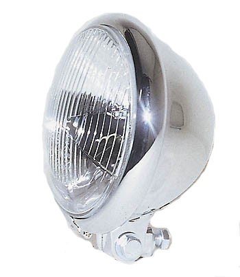 Ce phare avant chromé style Bates est très robuste et se monte par le bas (!).