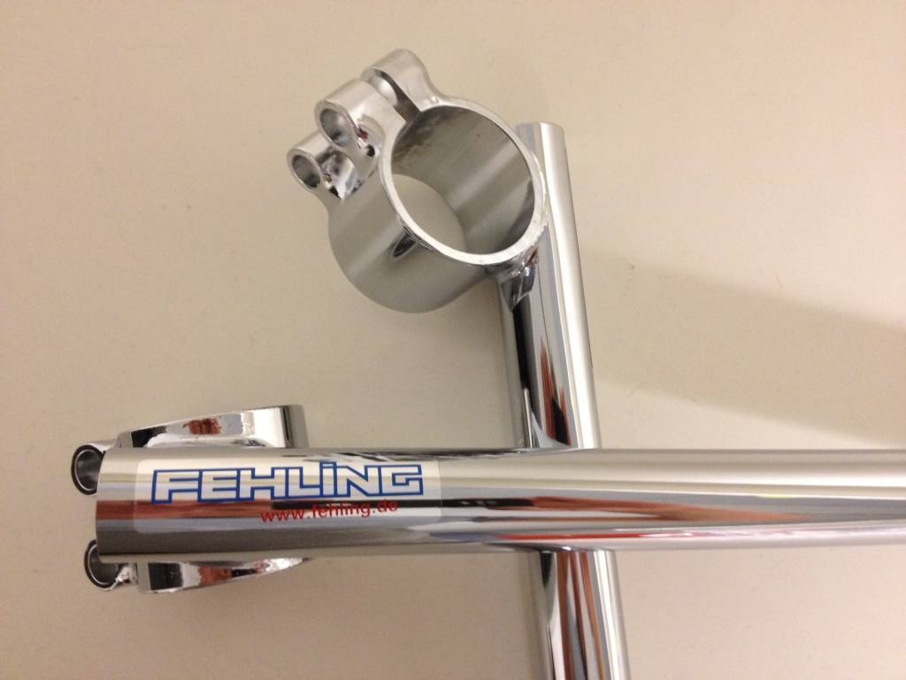 Demi-guidons chromés Café Racer de 22 mm (7/8") avec homologation Tüv. Ces petits bijoux sont géniaux et fabriqués selon des standards de production très rigoureux ! Fehling est une marque très connue en Europe qui possède tout ce qu'il vous faut !