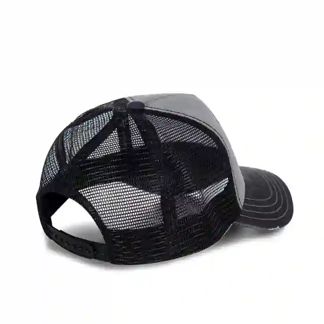 Cette casquette réglable avec filet est fabriquée à partir de 50 % de coton et de 50 % de polyester.