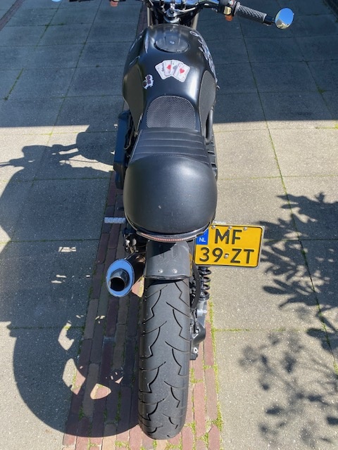 -Toen ik hem kocht zaten er banden op van 19 jaar oud met goed profiel dit zegt iets over het gebruik. --km stand onbekend.