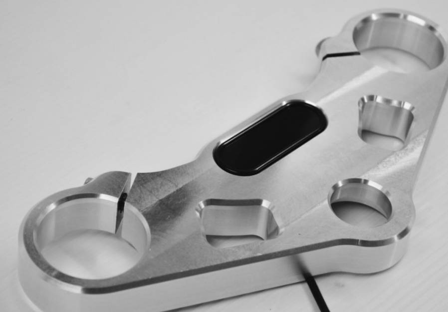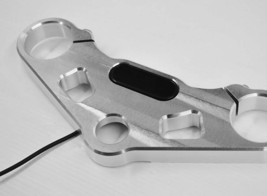 Ce té de fourche fabriqué par usinage CNC est super cool pour votre BMW K100. De plus, il possède un trou de montage pour pouvoir y fixer un tableau de bord Motogadget tel le Motoscope Mini.