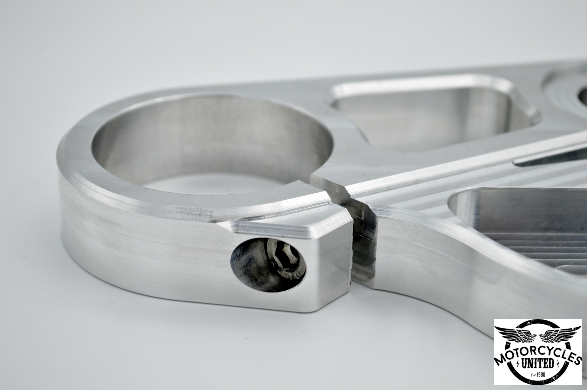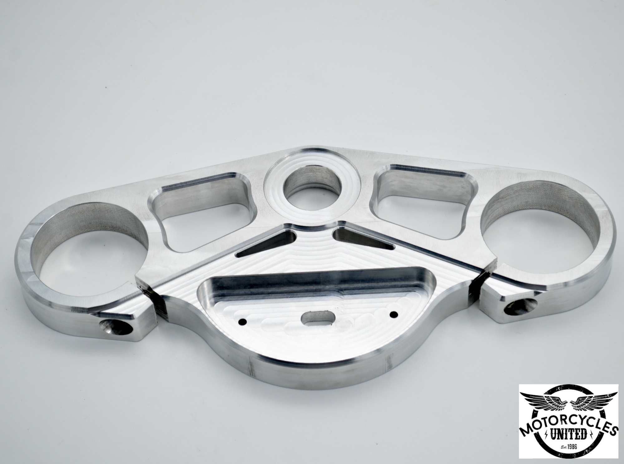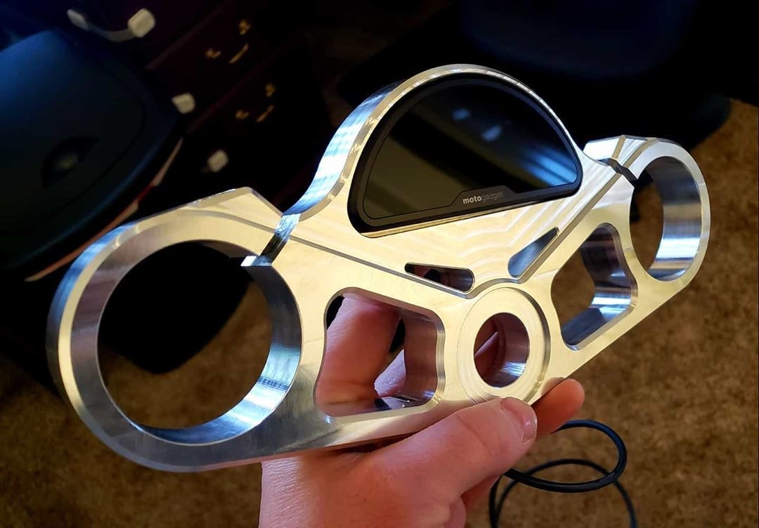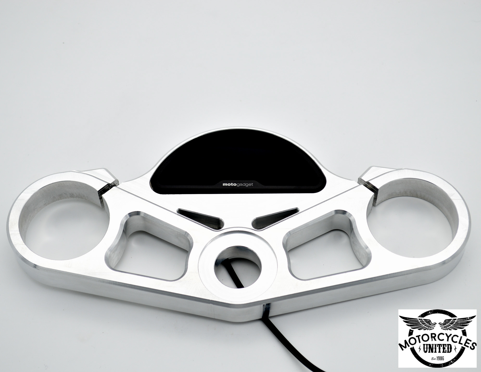 Ce té de fourche supérieur fabriqué par usinage CNC est super sympa pour votre BMW K100. De plus, il possède un trou de montage pour un tableau de bord de Motogadget tel le Motoscope Pro.