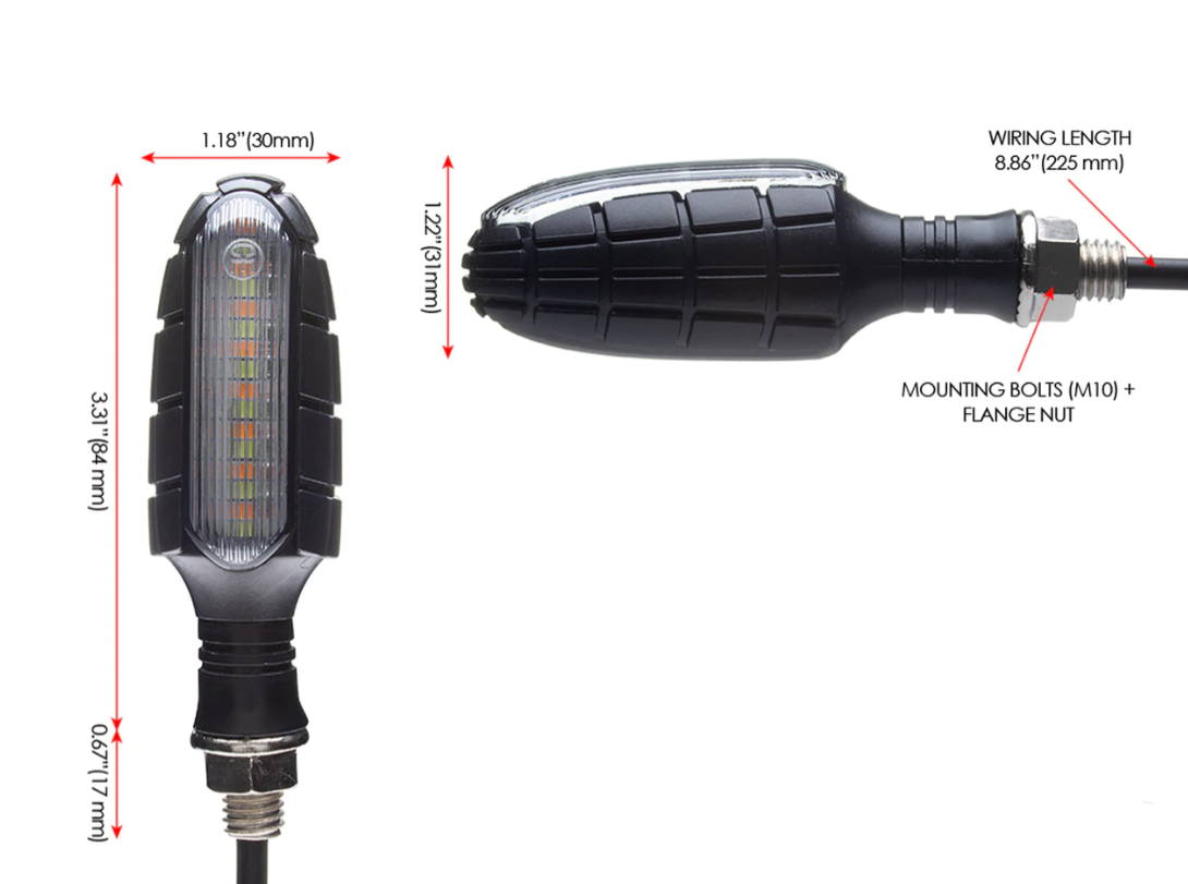 Ces clignotants à DEL intégrés combinent les fonctions de clignotant et de feux stop / arrière nécessaires à l'arrière de votre moto. Les LED changent de couleur entre les fonctions - LED orange pour les clignotants et LED rouge à deux étages pour les feux stop / arrière.