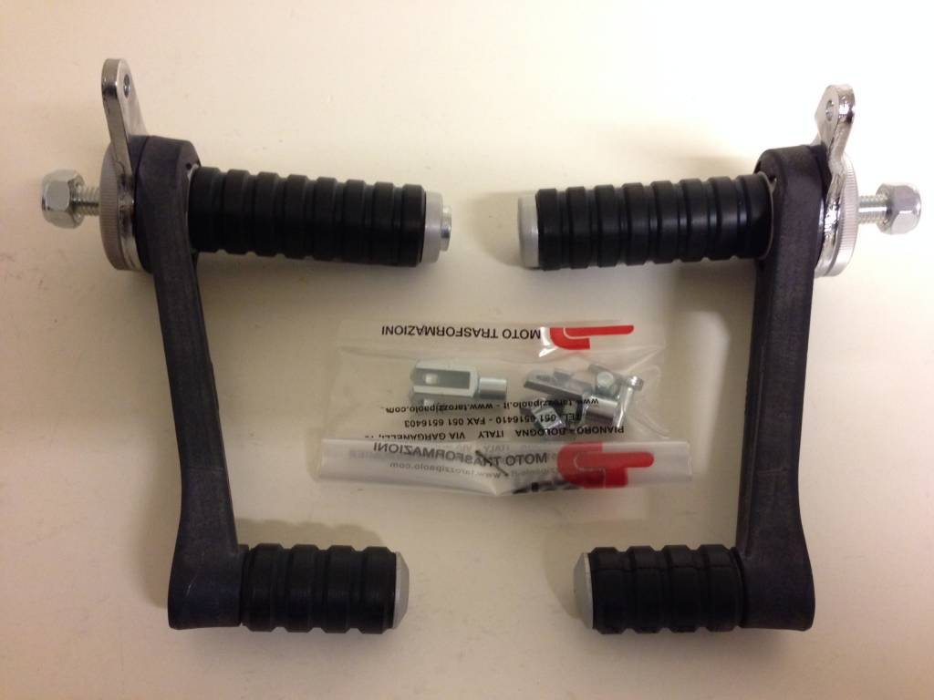 Voilà des commandes reculées magnifiques de la marque italienne Tarozzi. Cet ensemble est pliable, ce qui le rend utile en plus d'être un véritable atout esthétique pour votre moto. Il s'agit d'un indispensable pour votre Café Racer.