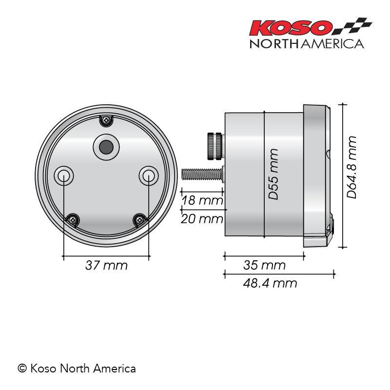 Compte-tours noir DL-02R 55 mm avec thermomètre (écran LCD, 20.000 tr/min)