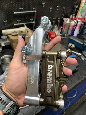 - 1x adaptateur d'étrier (côté gauche) en alliage d'aluminium 7075 T6 (espacement des vis de 100 mm - Brembo)