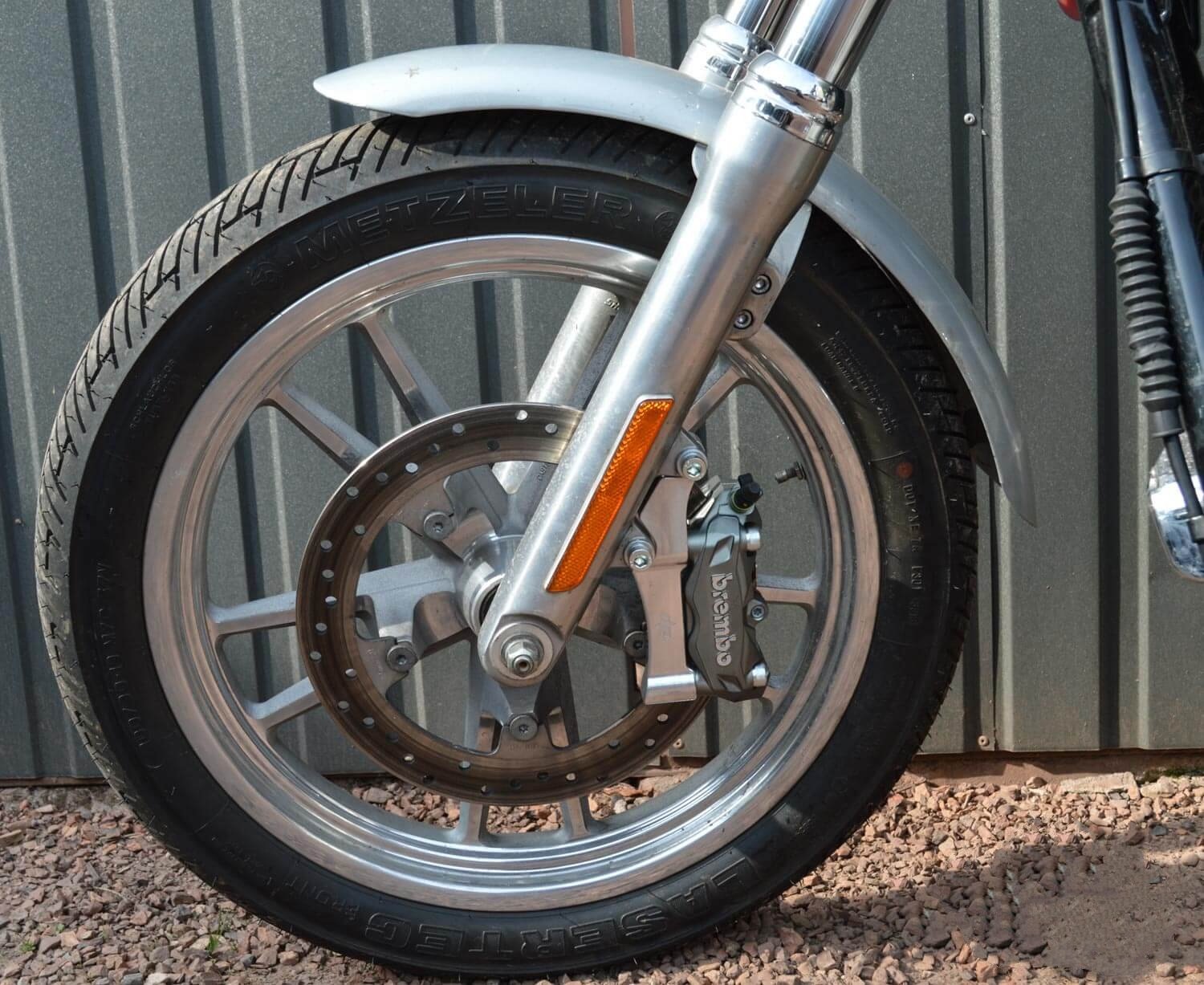 Mise à niveau pour l'adaptateur d'étrier avant gauche sur une Harley Davidson Dyna (2006-2017).