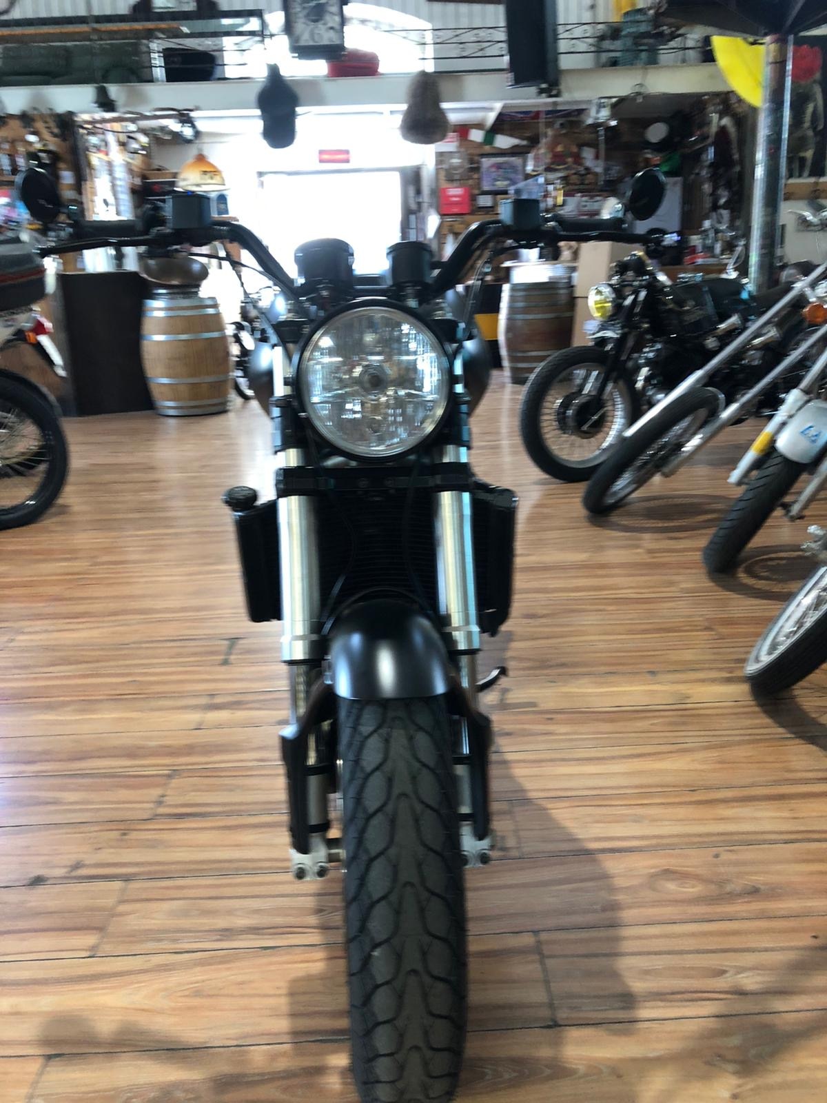 Aangepaste handgemaakte lederen zadel, complete wijziging van de bovenbouw, verlichting, handgemaakte uitlaten, handgemaakte tank, gepoedercoat frame, ohlins vering, richtingaanwijzers, koplampen, instrumenten, stuur ... alle gehomologeerd, reeds gereviseerd, 0 km banden