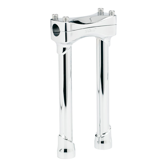 • Les tubes de colonne montante sont constitués de tubes en chromoly 4130 sans soudure de 3 mm d'épaisseur, soudés au TIG, avec des trous de montage filetés 1/2-13 qui acceptent les boulons de colonne montante standard. Espacement de 3-1/2" (89 mm) pour s'adapter à la plupart des tés supérieurs HD.