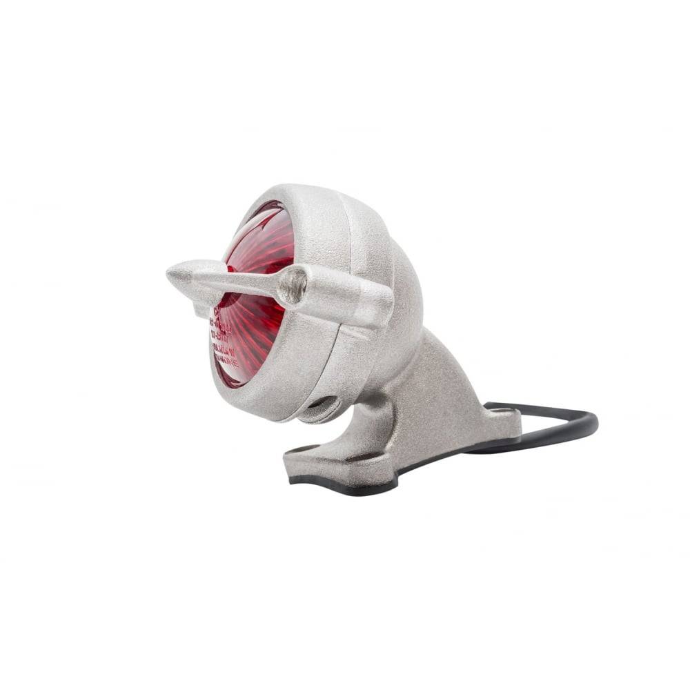 Feu arrière Bel Air et support de garde-boue - Poli. Ce feu fait office de feu arrière, feu de stop et éclairage pour la plaque d'immatriculation grâce à une fenêtre inférieure. Fabriqué en aluminium et avec une finition sablée.