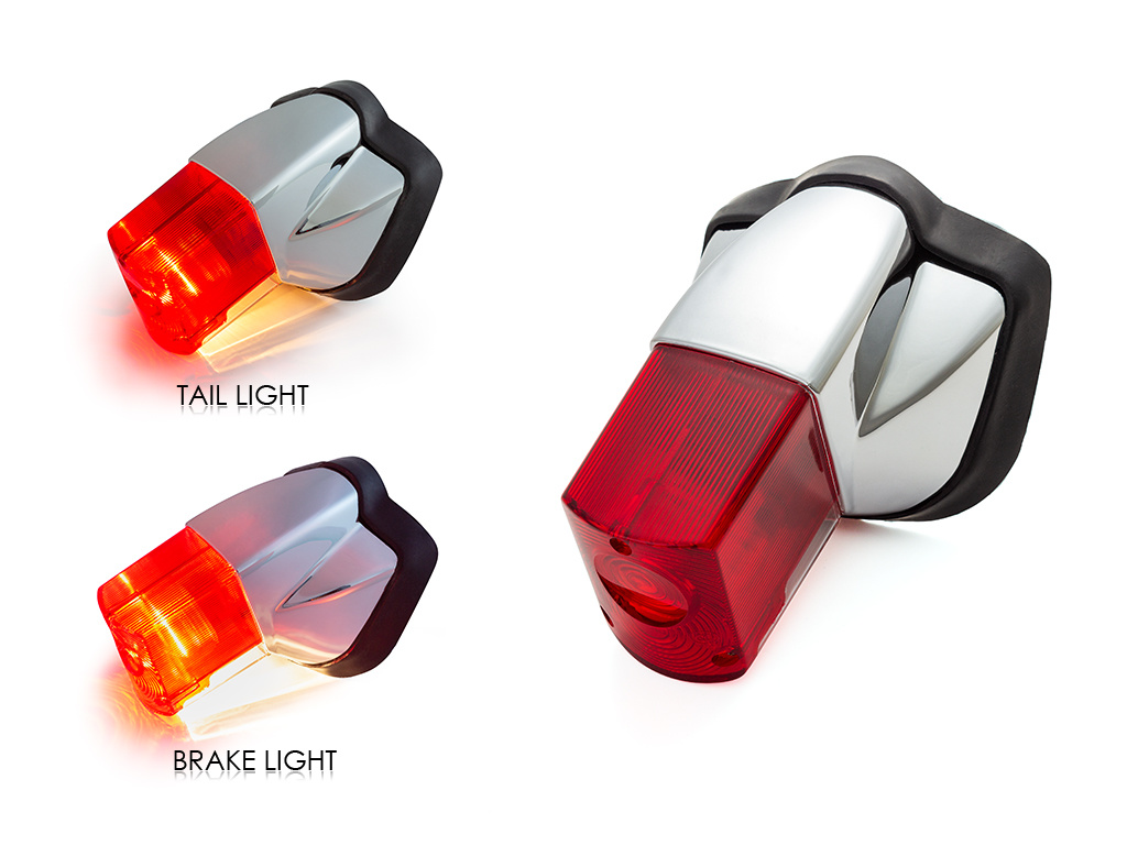 Ce module de feu arrière "Arizona" est un feu arrière complet, de frein et de plaque d'immatriculation + support. Pour ce look old school sur votre café racer.