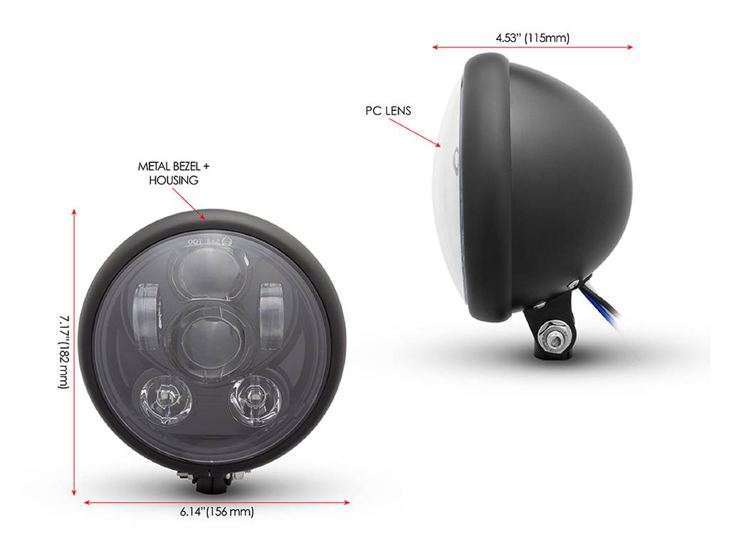 Ce phare avant universel combine le style classique avec son boîtier en métal avec une lampe LED, pour un côté moderne. Le support de montage inférieur est universel et convient donc à presque toutes les motos. Lampe très brillante et très tendance.