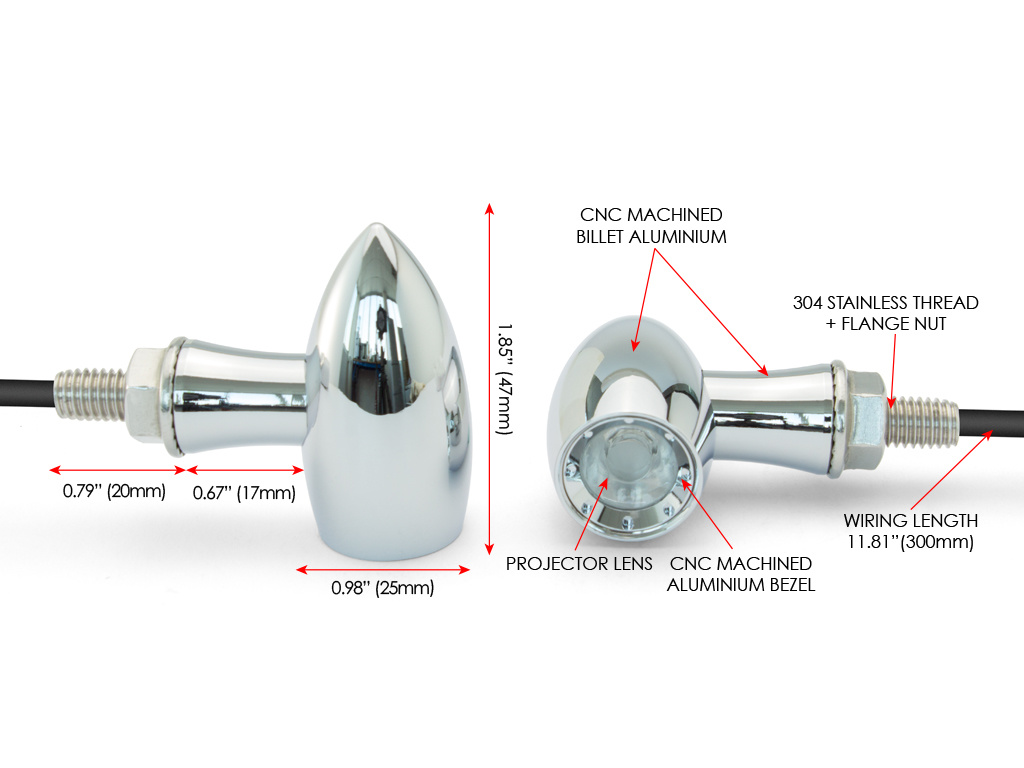 Ces feux arrière de haute qualité sont usinés à partir d’aluminium massif 6061. À l’intérieur, ils comportent une puce à DEL CREE rouge très puissante et très puissante avec une lentille de projecteur. Ils sont également très petits et discrets et conviendront aux acheteurs exigeants à la recherche d'indicateurs de haute qualité à un prix abordable.