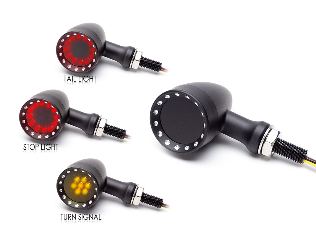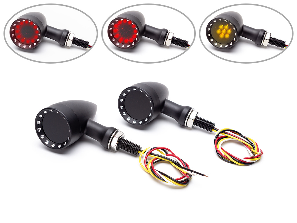 Feux de stop / feux arrière + clignotants à LED noirs Bullet en alliage
