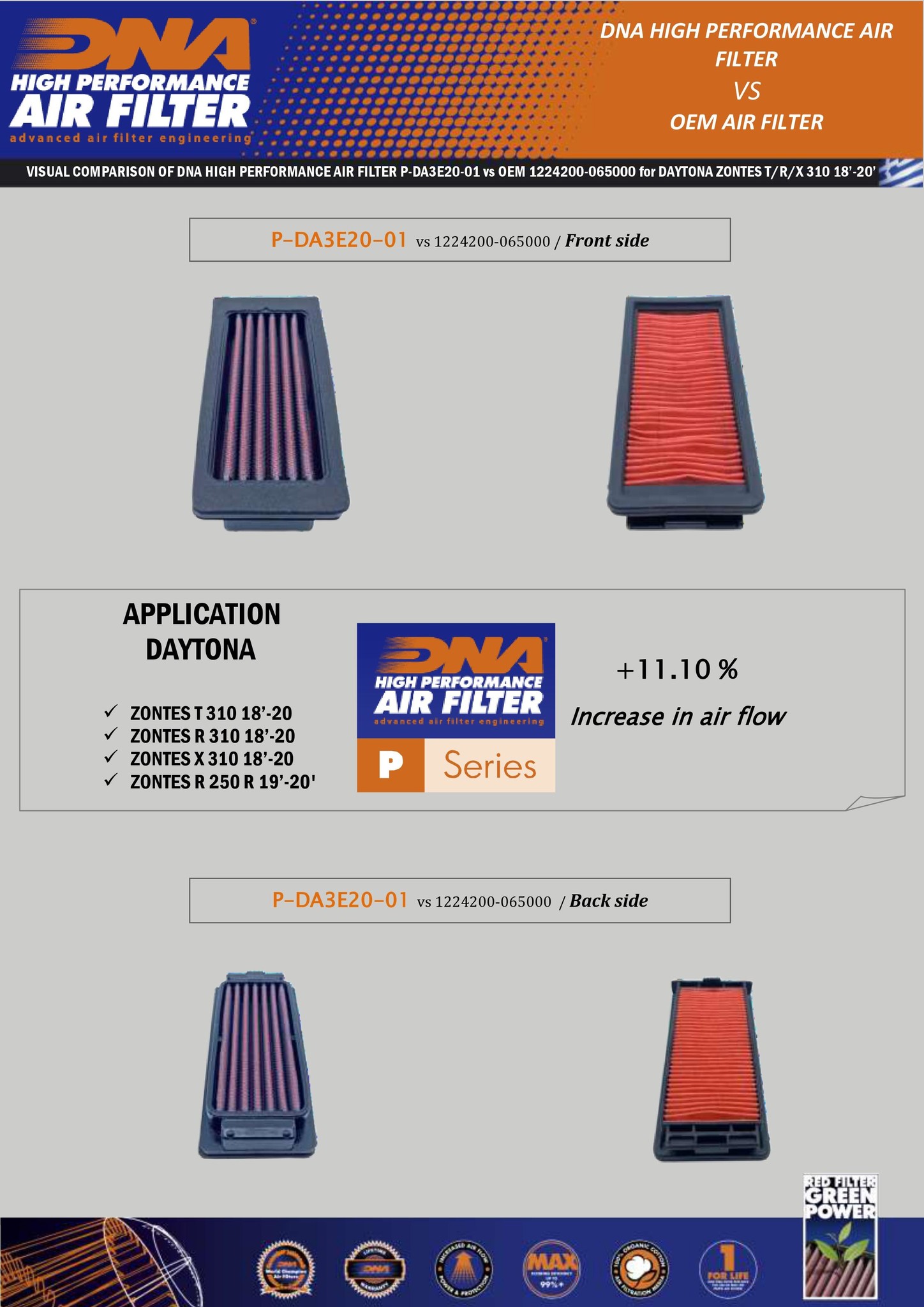 Filtre à air haut de gamme pour Daytona Zontes série 310 (18-20) P-DA3E20-01