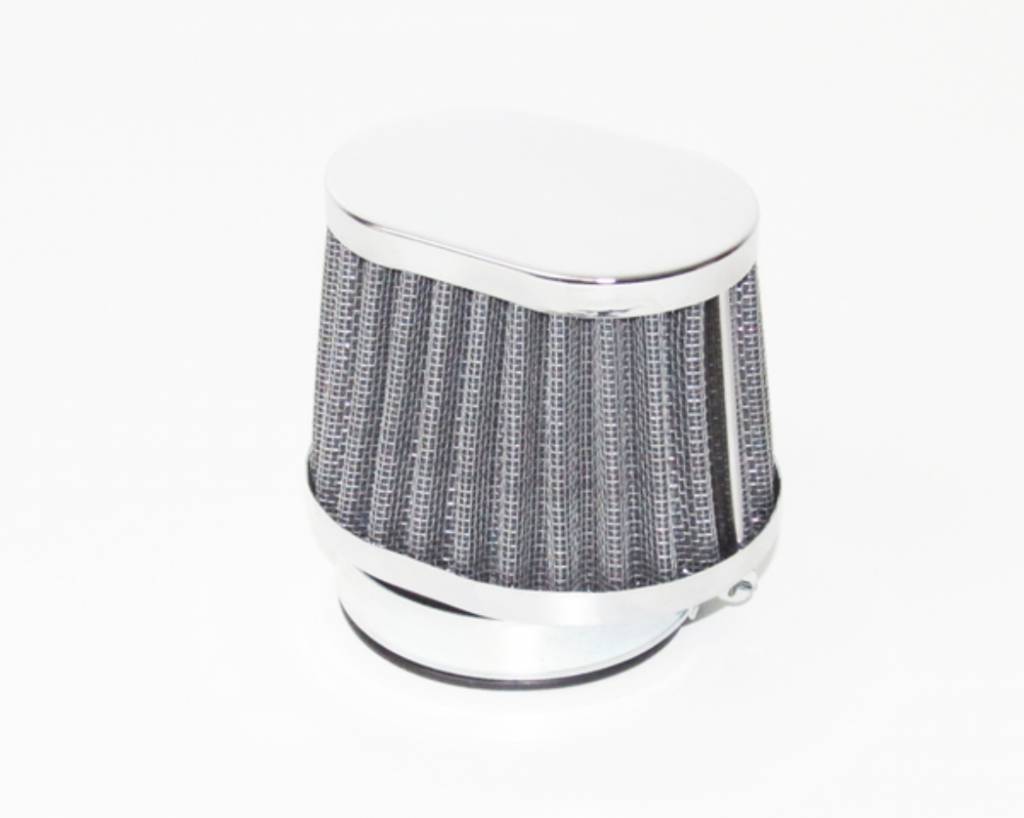 Filtre à air ovale chromé. Sélectionnez le diamètre qu'il vous faut.
