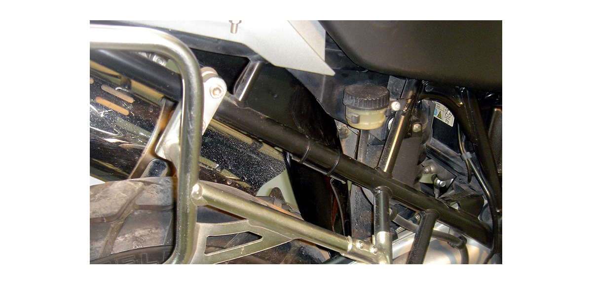 Garde-boue arrière pour BMW R1200GS. Protège l'amortisseur arrière de la boue et protège également les pieds du conducteur et du passager de l'eau.