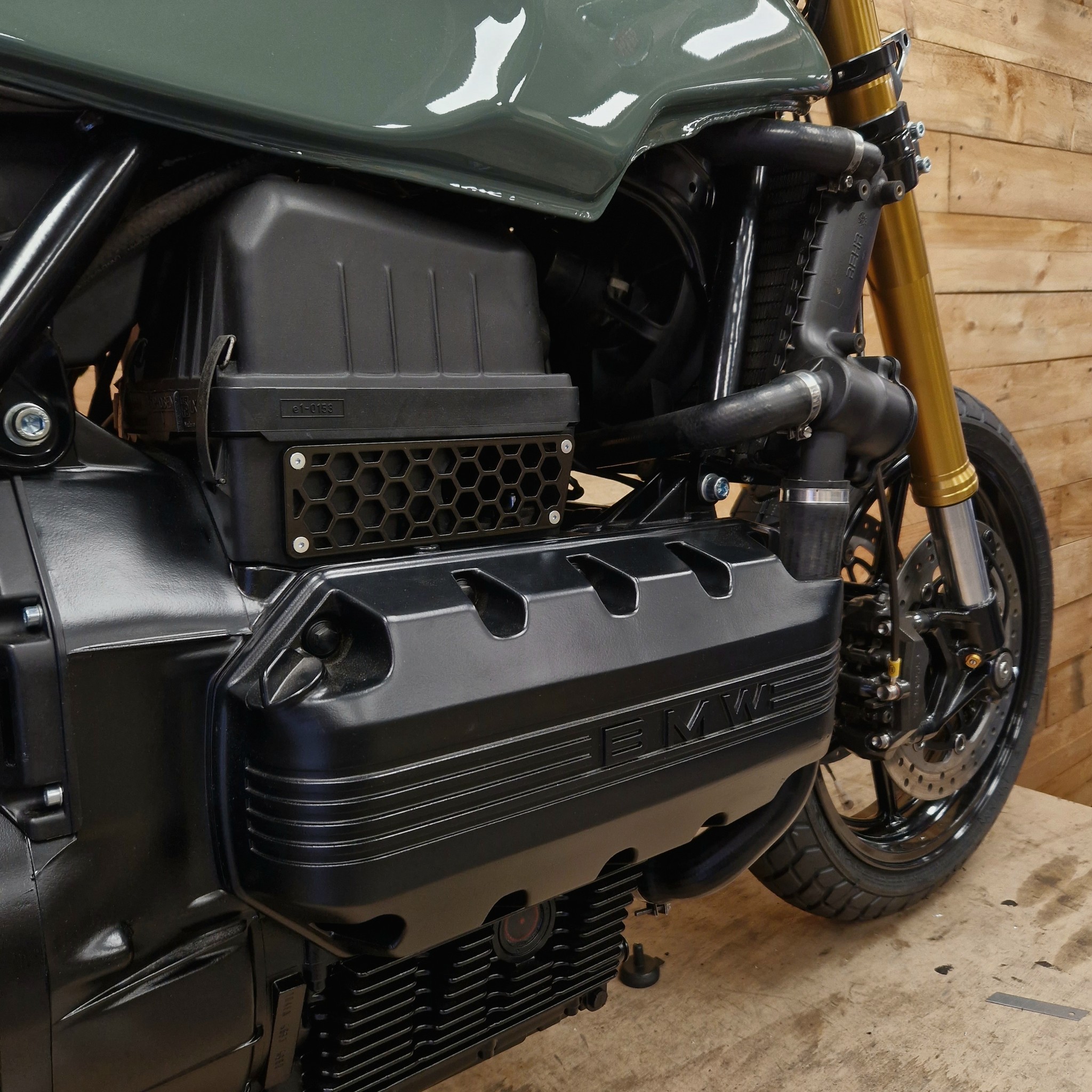 Admission de boîte à air personnalisée avec motif hexagonal ou lignes droites pour votre construction BMW K! La boîte à air remplacera le tuyau d'admission, ce qui donne au vélo un aspect beaucoup plus propre. L'admission est en aluminium et revêtue de poudre. L'ensemble sera livré complet avec toutes les fixations, il n'est pas nécessaire de souder des supports supplémentaires ! La couverture de radiateur est disponible en 2 types :
