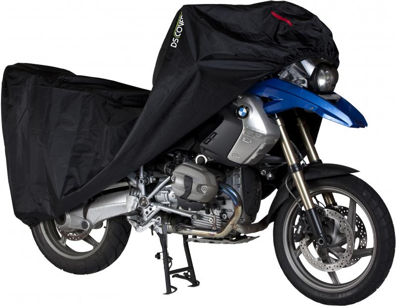 Notre housse de moto d'entrée de gamme est la DELTA. La housse moto DELTA est très légère et ne comporte pas de doublure, contrairement à la housse moto ALFA (environ 1 kg). Cela rend la housse parfaite à emporter avec vous, par exemple, en vacances à moto. La housse de protection a des trous de verrouillage pour pouvoir être fixée à la moto. Il est également doté d'un ourlet élastique robuste et d'une fermeture à pression réglable pour l'empêcher de s'envoler par vent fort. Grâce aux ailettes de ventilation en haut du couvercle, la condensation qui peut s'accumuler dans certaines circonstances peut être expulsée.