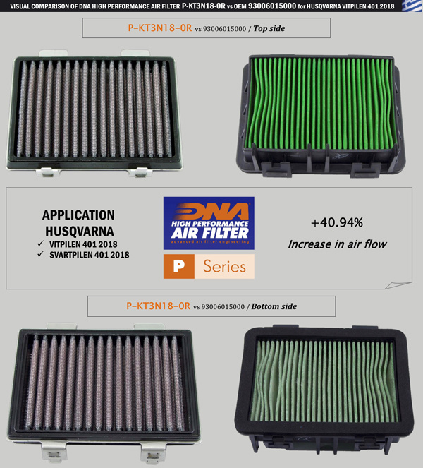 Le débit de ce filtre DNA est supérieur de 40,94 % à celui du filtre Husqvarna !